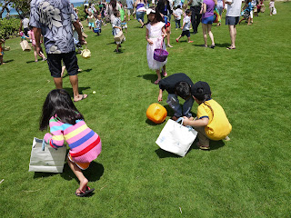 Easter egg hunt at the church after the mass at St.Roch catholic church in kahuku,hawaii